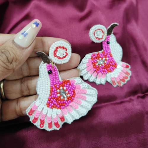 Handwoven with precision and care -Vibrant White, Pink beads & Stone used in a range of eye-catching Bird form. This beautiful Bird Ear-Ring specially designed for Funky Parties & functions..