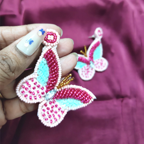 Handwoven with precision and care -Vibrant White, & Pink beads used in a range of eye-catching butterfly form. This beautiful Butterfly Ear-Ring specially designed for Funky Parties & functions.