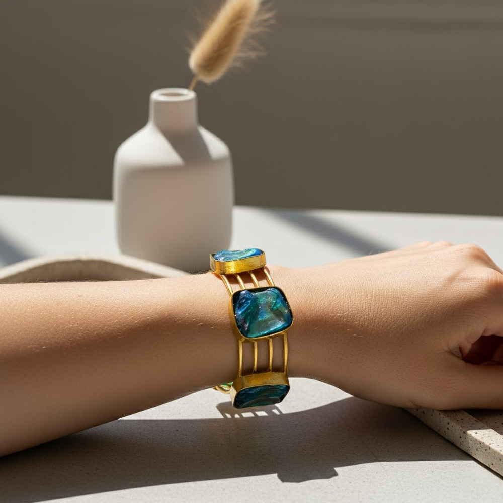 Handcrafted with precision and care – vibrant natural agate stone / gold plated bracelet catches every eyes. This vibrant bracelet specially designed for theme parties & functions.