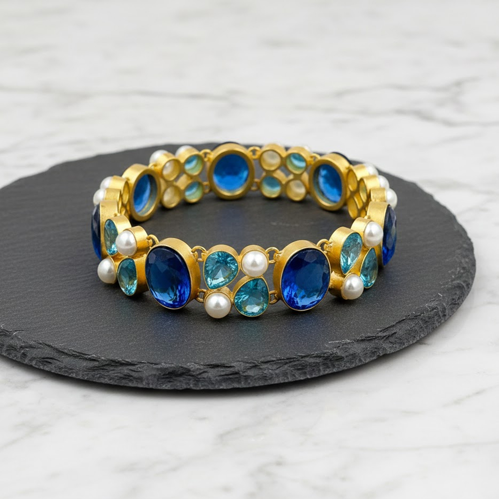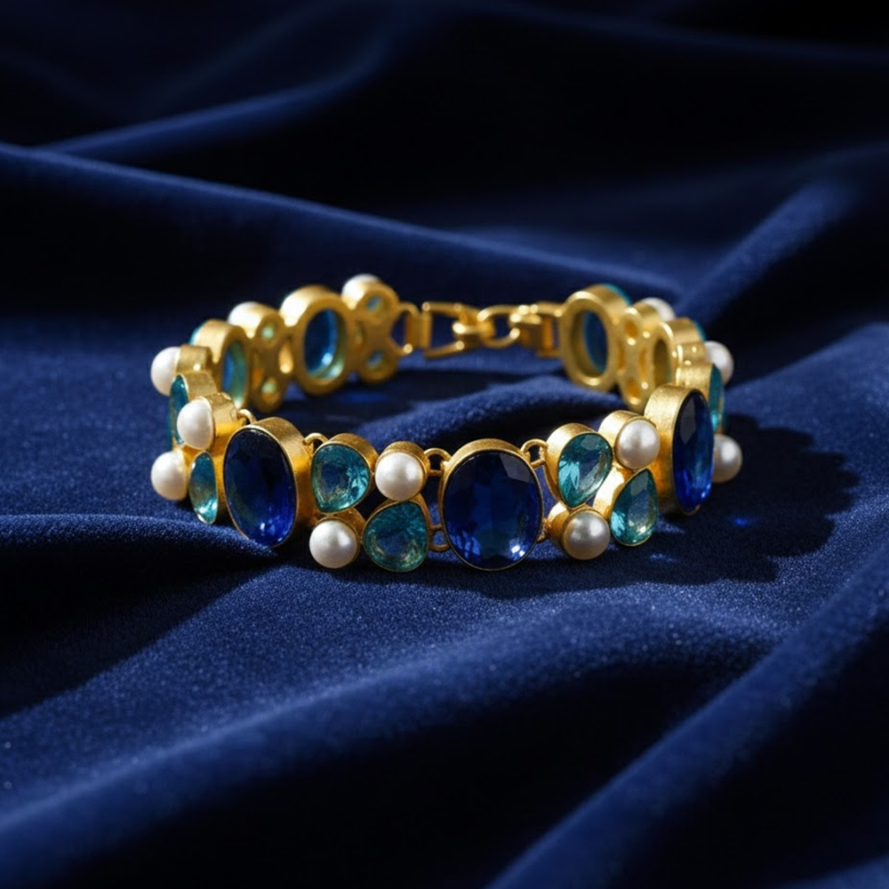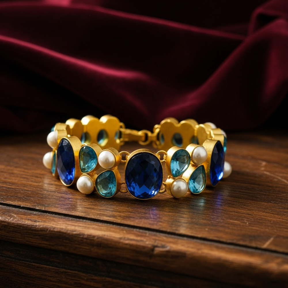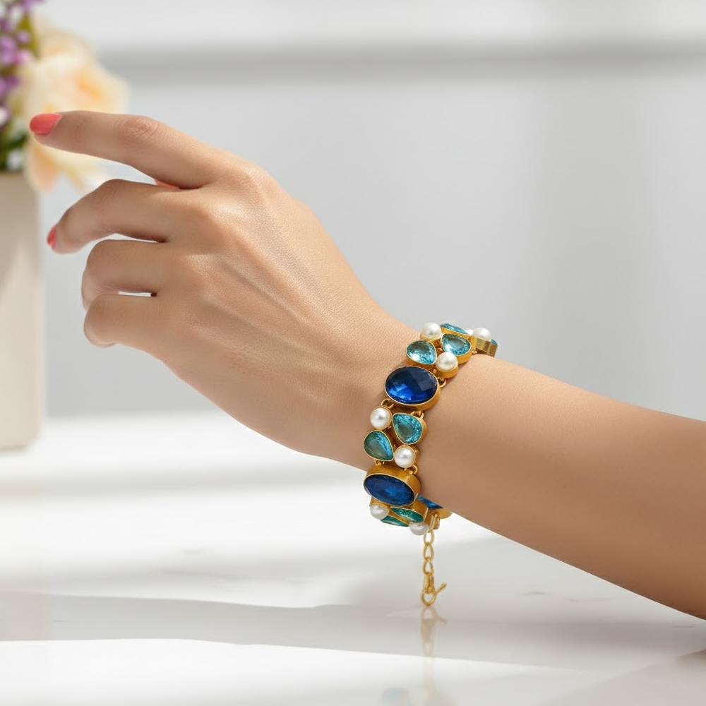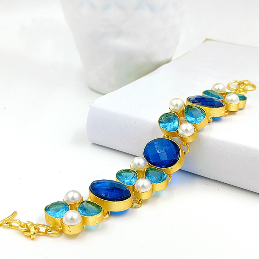 Handcrafted with precision and care – vibrant natural crystal stone / gold plated bracelet catches every eyes. This vibrant bracelet specially designed for theme parties & functions.