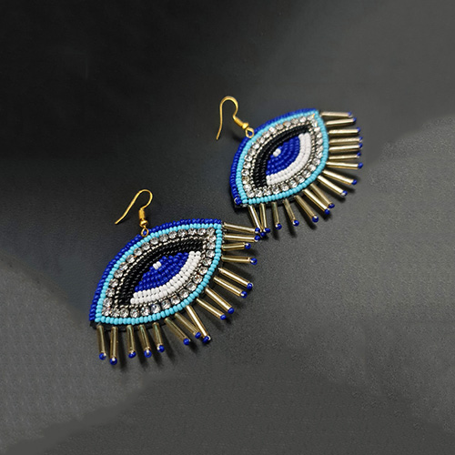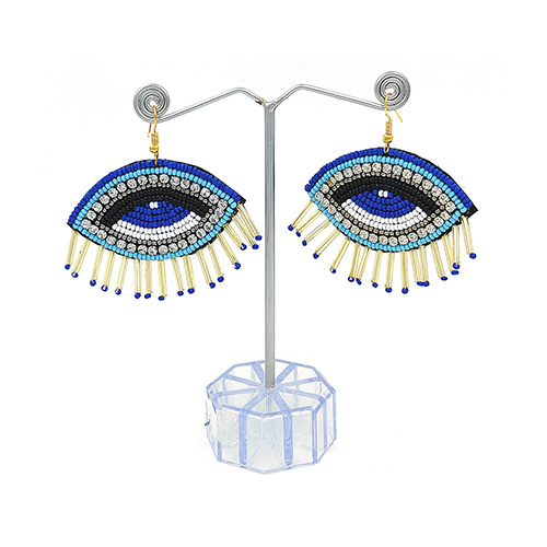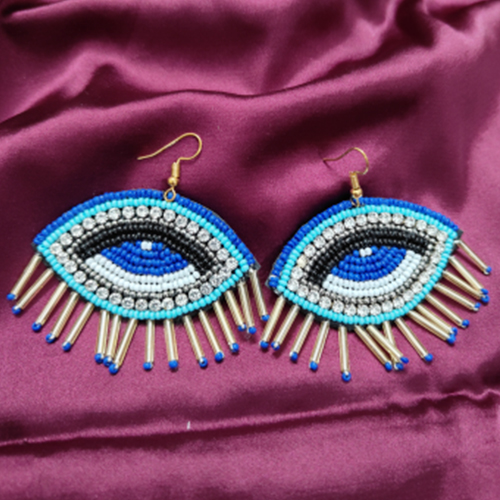 Handwoven with precision and care -Vibrant Silver Sparkling Stone & blue beads used in a range of eye-catching Evil eye form. This beautiful Turkish Ear-Ring specially designed for Funky fashion & Styles.