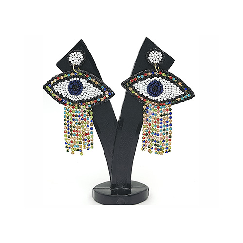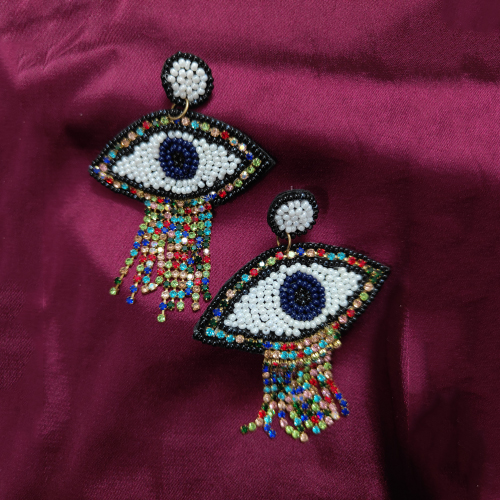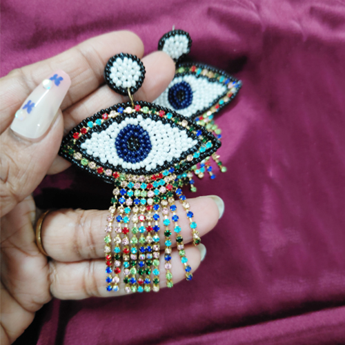 Handwoven with precision and care -Vibrant Silver Sparkling Stone & white beads used in a range of eye-catching Evil eye form. This beautiful Turkish Ear-Ring specially designed for Funky fashion & Styles.