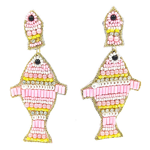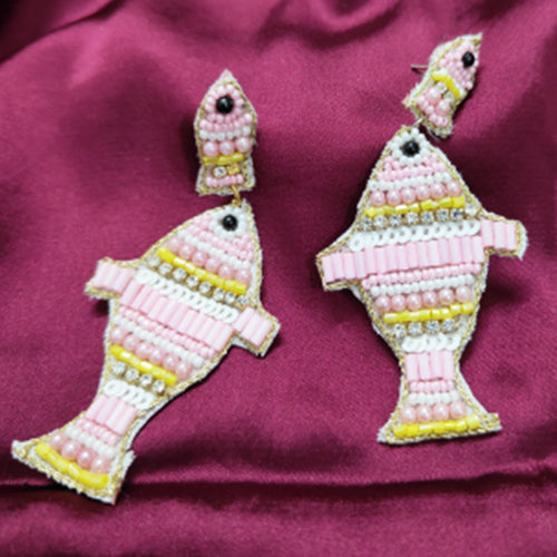 Handwoven with precision and care -Vibrant White, Pink beads & Stones used in a range of eye-catching Funky Fish form. This beautiful Fish Ear-Ring specially designed for Funky fashion lovers.